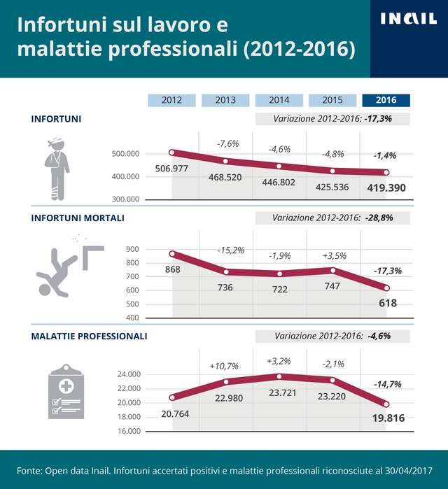 Infografica INAIL su infortuni sul lavoro e malattie professionali